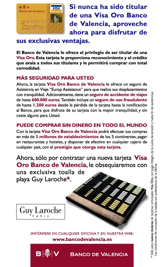 Asociado a este producto la entidad le ofrece un seguro de accidentes de hasta 180.000 euros con Allianz, y seguro de vida de hasta 6.000 euros con Eurovida.